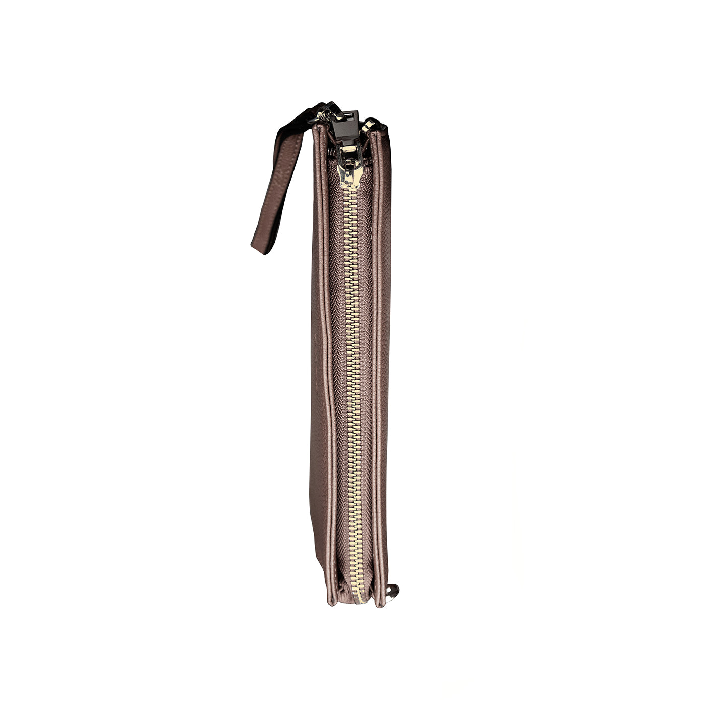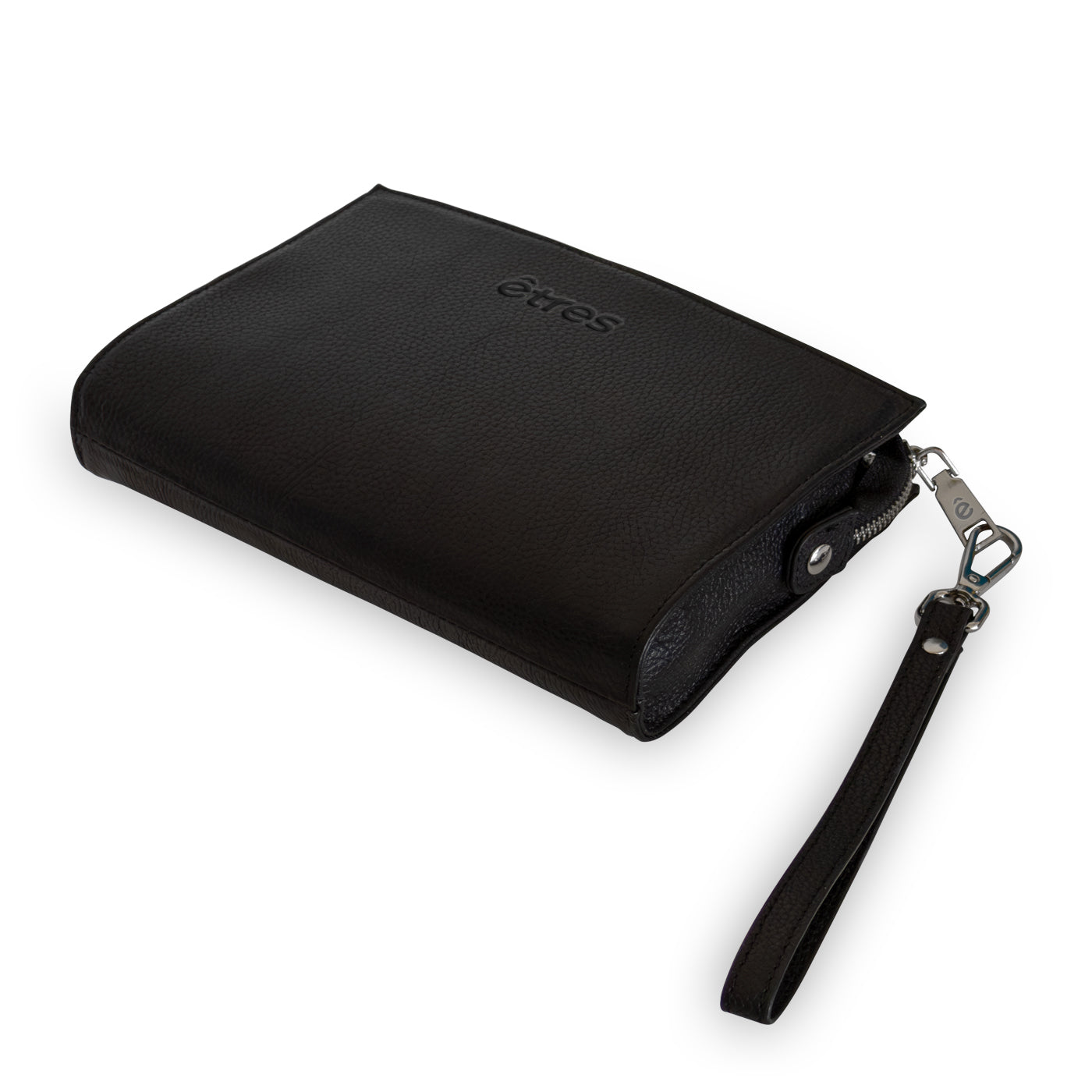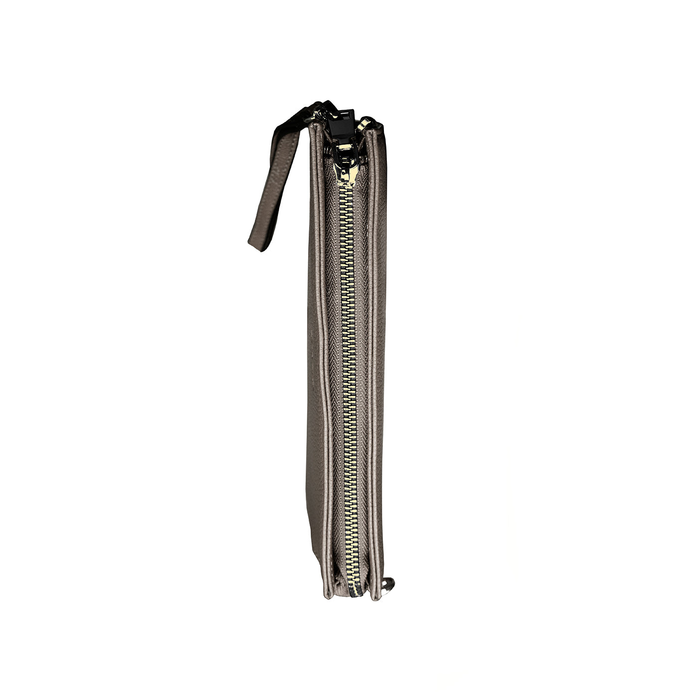Linee essenziali e design contemporaneo, pensata per chi cerca un accessorio pratico e versatile, senza rinunciare a un’estetica curata. Realizzata in resistente similpelle (PU) effetto martellato, con una texture piacevole al tatto e dall’aspetto sobrio e professionale. La chiusura a zip in metallo garantisce sicurezza e affidabilità, mentre il cinturino da polso removibile con moschettone consente un utilizzo comodo e flessibile.